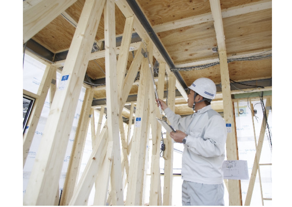 Live Sumaiでは、設計段階の構造計算だけでなく、施工現場でもパナソニックの構造技術者が検査を行います。接合部のボルト1本1本まで締め付け確認を行い、計算通りの構造が再現されているかを確認します。