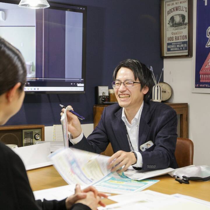 営業スタッフと住宅ローン担当が連携し、銀行にわざわざ行かなくても、当社の打ち合わせスペースに銀行員に来社いただき、当社担当者も同席の上、相談できる体制を整えています。