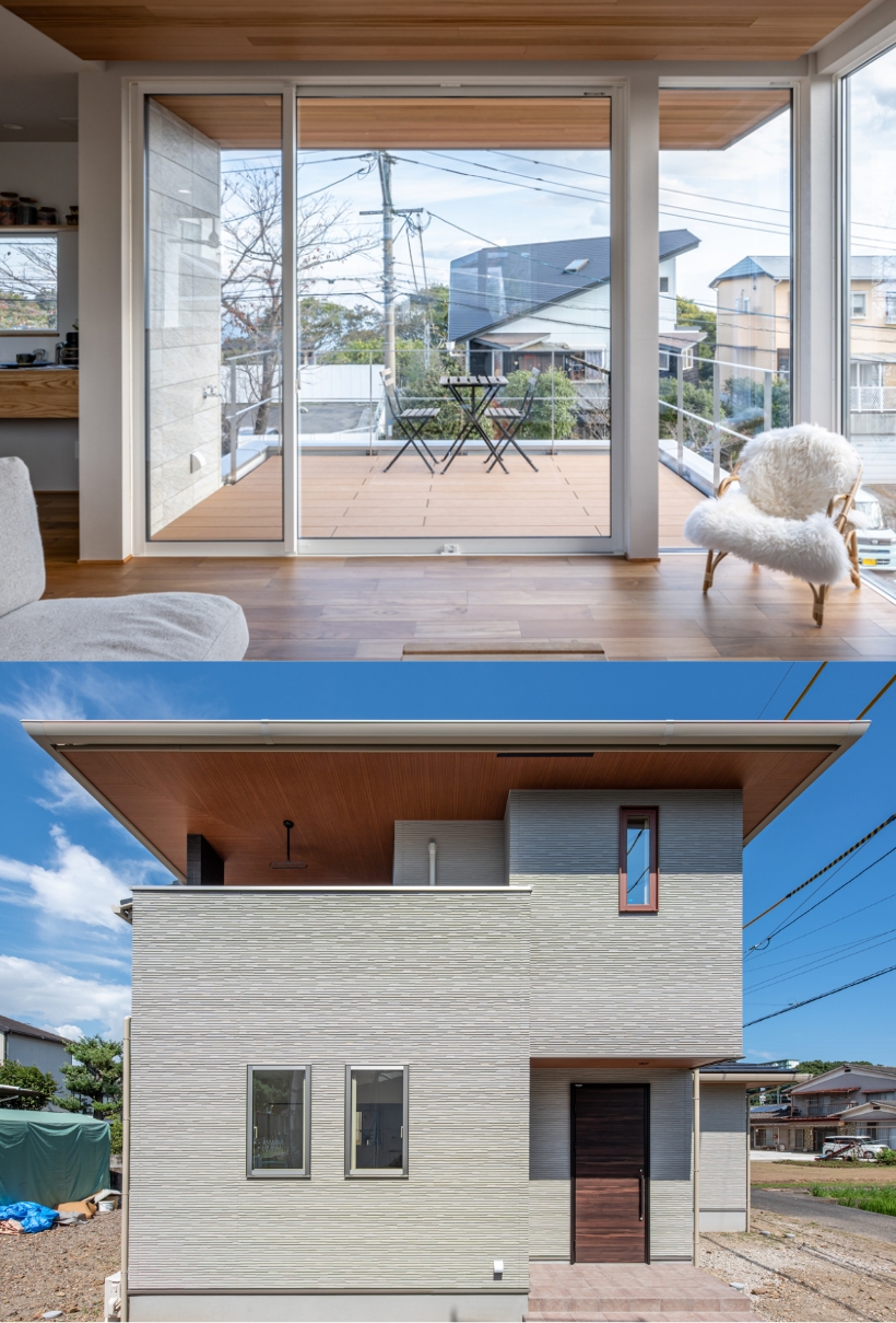 外との“ちょうどいい距離感”をつくるオーバーハングは、機能と美しさを兼ね備えた、上質な住まいのアクセントです。