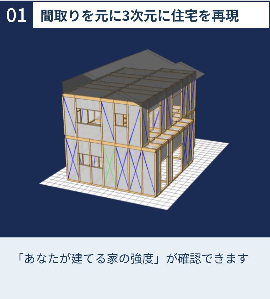 地震や風、雪などの力が加わるほぼすべての部位の強度を確認し、住まい全体のバランスがしっかり保たれるよう、細部まで緻密に検証しています。