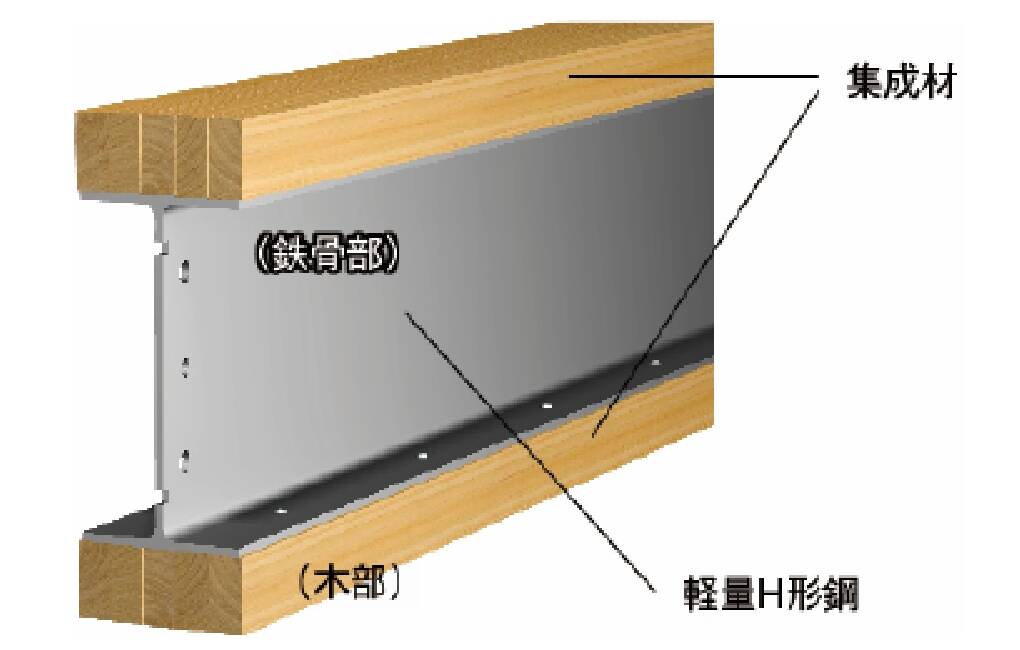 横向きに使うとたわみやすい木材に、鉄の強さを加えることで、梁(はり)の“たわみ”を大幅に軽減。